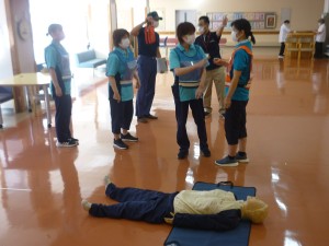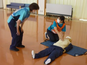 訓練内容は、人が倒れているときにどの様に対応すればよいか、個々で考え行動するという内容でした。